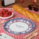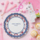 Elegantes Burgundy Navy Floral Damask Hochzeitsess Pappteller