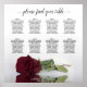 Diese Hochzeitskarte ist einfach, elegant, romantisch und elegant. Das Design umfasst eine Bordeaux, einen Single oder eine rote Rose, die in Wasser mit Wellen und Wellen reflektiert wird, mit einem laksigen Skript-Kalligraphietitel, der lautet: "Finden Sie Ihren Tisch". Es gibt Platz für die Namen des Paares und das Hochzeitstag. Dieses Sitzdiagramm verfügt über Tischbelegungen für 80 Gäste an 8 Tischen (10 Personen pro Tisch). So können Sie Ihren Empfang schön machen und Ihren Gästen dabei helfen, den richtigen Sitzplatz zu finden.