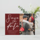 Elegantes Burgundy Script Couple Foto Save The Date