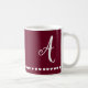 Elegantes Burgundy und Weißes Monogramm Kaffeetasse