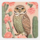 Elegantes Burrowing Owl und Kakteen Quadratischer Aufkleber