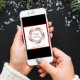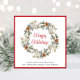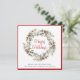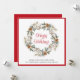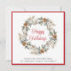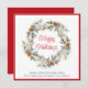 Firmenweihnachtskarte für Ihr Unternehmen oder Ihre Organisation mit einer Aquarellfarbe eines Kranzes aus weißen Winterfloralen, Pinecones und saisonalen Salbei-grünen Pinien-Blätter und Grünpflanzen, "Happy Holidays" in einem stilvollen roten Drehbuch und Ihrem Firmennamen in schlichter moderner Typografie.