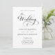 Elegantes Kalligrafie Script QR Code Doppelseitiges Schwarz und Weiß Einladung Hochzeit... Unsere elegante Schwarz-Weiß-Hochzeitseinladung beinhaltet Wirble Kalligraphie-Skripte kombiniert mit wunderschöner Serifentypografie, um ein romantisches Set für Ihre kommenden Nuptials zu schaffen. Auf der Rückseite der Einladung wird auch der QR-Code Ihrer Hochzeitswebsite sowie die URL der Website selbst angezeigt, die es Ihren Einladenden ermöglicht, einfach online zu UAWG und alle Details, die typischerweise in einem Hochzeitspaket gesendet werden, zu sehen. Diese zweiseitige Hochzeitseinladung wurde sowohl elegant als auch zeitgemäß gerettet... und baumfreundlich gestaltet. Das Beispiel QR-Codegrafik und alle Beispieltexte (außer den grafischen Kalligrafieelementen) können mit eigenen Informationen über die Personalisierungsvorlage leicht überarbeitet werden.
