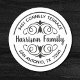 Ein benutzerdefiniertes Rundrücksendeetikett, das mit einem dekorativen Schriftzeichen für die Schriftrolle um den Nachnamen ergänzt wird. Geben Sie Ihren Namen und Ihre Adresse anstelle des Beispieltextes in der Entwurfsvorlage ein. Entworfen für Sie von BlackBerry Boulevard.