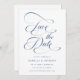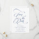 Romantische, staubblaue Hochzeiten sichern das Datum mit eleganten und romantischen Wirblen Kalligrafiebuchstaben mit einem Foto auf der Rückseite. Ideal für jede Jahreszeit. Für eine weiter gehende Anpassung dieses Designs klicken Sie bitte auf den BUTTON BLAU DESIGN TOOL oben!