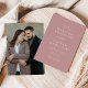 Elegante Hochzeitseinladungen mit Namen und Hochzeitsdetails in weißer Schrift mit einem staubigen Hintergrund der Rose. Eine moderne Kalligraphie-Schrift ergänzt das Aussehen dieser schicken staubigen Hochzeitseinladung zur Rose. Die Einladung kehrt zurück, um Ihr Lieblings-Verlobung-Foto anzuzeigen. Diese Einladung zum Foto ist ideal für feierliche und lässige Hochzeiten zu jeder Jahreszeit.
