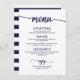 Elegantes Calligraphy Navy Blue Script Wedding Men Menükarte
