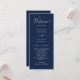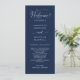 Herzlich willkommen bei Ihren Gästen dieses elegante Hochzeitsprogramm mit feinen Kalligrafiedetails. Design in einer attraktiven marineblau Hintergrundfarbe und Text in weiß. Fügen Sie Ihre eigenen Daten mithilfe der Textfelder der Vorlage hinzu. Wenn Anpassungen erforderlich sind, verwenden Sie die Schaltfläche "Tool zum Bearbeiten mit dem Design" am Ende der Textfelder der Vorlage, um Textgröße, Positionierung oder Stil im Editor zu ändern, um die gewünschten Details zu erhalten.