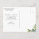 Elegante "Danke" Kalligraphie in weiß, Hochzeit Foto danke Ihnen Postcard. Auf der Rückseite der Karte befindet sich die Aquarellfarbe Eukalyptus-Blattstruktur.