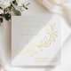 Dieses elegante Cascading Gold Foil Gästebuch fügt Ihrer Hochzeitsfeier eine stilvolle, personalisierte Touch hinzu. Das Design beinhaltet Namen, Hochzeitstag und Lage in Goldfolie, geteilt durch eine Weinrebe mit skizzierten Blätter mit weißem Hintergrund. Fügen Sie dem Rückgrat einen benutzerdefinierten Text hinzu, z. B. Ihren Namen, Ihr Hochzeitstermin usw. Auf der Rückseite des botanischen Gästebuches aus Goldfolie wird Ihr quadratisches Foto der Verlobung angezeigt.