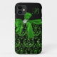Elegantes Damastmuster des schwarzen und Smaragdgrüns, das einen irischen grünen Satinbogen und einen glänzenden Diamanten kennzeichnet. Personifizieren Sie ihn mit Ihrem Monogramm oder fügen Sie Ihren Namen unter Verwendung der Orange "besonders anfertigen sie Knopf" hinzu. Stilvoll, weiblich, girly! Das perfekte Geschenk für irgendeine schicke Frau! Einige Elemente durch Shery K entwirft @ Mygrafico. Merken Sie bitte, dass dieser Fall das gedruckte Foto ist. Es gibt keinen tatsächlichen Diamanten, Satinbogen oder Glitter. Es glänzt nicht oder funkelt.