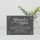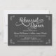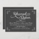 Rustikale Chalkboard Vorverheiratung Veranstaltung Probe Abendessen Party Einladungen mit einfachen, aber eleganten geschweiften Schrift-Kalligrafie und Eckrollen auf schlichten Schiefergrauen Tafel. Fügen Sie die Namen und Hochzeiten Informationen in dieser leicht zu verwendenden Vorlage. Retro-Stil Chalkboard Einladungen sind perfekt für trendige moderne Hochzeiten mit einer lustigen Touch von raffiniertem Charme für die traditionelle Braut und Bräutigam zu erschwinglichen Preisen für Braut auf ein Budget.