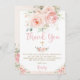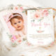 Elegantes Chic Blush Pink Floral Gold Taufe Foto Dankeskarte