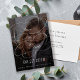 Klassische Wirbel schreiben ein modernes Schwarz-Weiß-Texteüberlagerungsschreiben (DRUCKEN AUF EINEM KARTENSTOCK), das die Datumskarte mit einem eigenen Foto speichert. ++++++++ Einfach mit Ihren Daten auf beiden Seiten personalisieren!