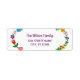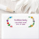 Stilvolles, individuelles Rücksendelabel für eine Familie (kann auch für eine Person angepasst werden), mit einem Blumenmotiv an den links und rechten Rändern und einem eleganten, zeitgenössischen, informellen Drehbuch für den Familiennamen oder Personennamen.
