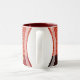 Ein elegantes visuelle eines goldenen Pferdes mit Blüten zu einem Kreis (inspiriert durch traditionelle chinesische Papierschnitt) mit roten Kreuzen überlagert ein rotes und gelbes traditionelles asiatisches Muster + grafische "HAPPY NEW YEAR" in Chinesisch und Englisch und alte chinesische Kalligraphie für "Pferd" auf gradiantem roten Farbband + kleine 2026 (Original-Handschrift). Design auf zweifarbiger Keramik Tasse.