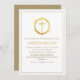 Elegantes Christliches Blue-Gold-Cross | Taufe Einladung