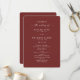 Einfache Solid Elegant Cinnamon Red Wedding Zeremony Programm. Diese moderne Minimal Order of Services Card ist schlicht klassisch und elegant mit schlichter Hintergrundfarbe und einem hübschen Schriftart mit Schwänzen in der Schriftzeichen-Kalligraphie. Im neuen Farbraum gezeigt. Erhältlich in mehreren Farboptionen, oder fühlen Sie sich frei, die Farben aus dem Editor zu bearbeiten (klicken Sie weiter anpassen während der Personalisierung). Um mehr zu sehen, suchen Sie nach Chic Paperie's Hochzeitskollektionen 2022, um alle über Trend Designs und Hochzeitsfarben für dieses Jahr zu sehen.