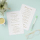 Elegantes Imitat Goldbudget Hochzeitsprogramm (gedruckt auf dünnem Flyer Papier) mit einem einfachen und minimalen Design mit den Namen der Braut und Bräutigam in einem klassischen Serif-Schriftart und die mittlere und letzte Namen in einem eleganten Kalligraphieskript. Ein klassischer Stil, der perfekt für eine formelle Hochzeit ist.