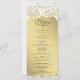 Dieses Hochzeitsprogramm strahlt Raffinesse aus mit seinem goldenen Hintergrund und verzierten Damast-Schnörkeln. Die Details des Programms werden auf einer Goldplatte schön dargestellt und harmonieren nahtlos mit dem aufwändigen Design, um einen luxuriösen und zeitlosen Look zu schaffen. Die reiche goldene Palette bietet einen klassischen und klassischen Stil, der dieses Design perfekt für elegante und formelle Hochzeitsfeiern macht.