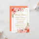 Elegante Watercolor Coral Gold Floral Bridal Dusche Einladung Karte