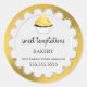 © 2021 Socialite Designs Inc. Diese eleganten Kuchen, mit einem goldgearbeiteten Hintergrund, Aufkleber sind ein wunderbares Design, um als Siegel auf Backverpackungen zu verwenden.