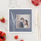 Fügen Sie Ihrem Hochzeitsempfang eine persönliche Touch mit dieser eleganten, individuellen Foto-Serviette hinzu. Es ist mit einem romantisch blau-grauen Hintergrund, einer zarten weißen botanischen Illustration und Platz für ein beliebtes Foto- und Hochzeitsdatum gestaltet und vereint modernes und naturlich inspiriertes Design. Ideal für rustikale Hochzeiten im Garten oder im Freien und einfach nach Ihren Wünschen angepasst.