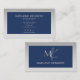 Elegantes Custom Silver Monogram Navy Blue Busines Visitenkarte