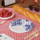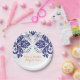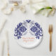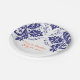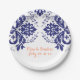 Elegantes Damasmotiv, blaue Korallenhochzeit Pappteller