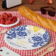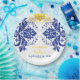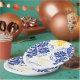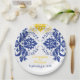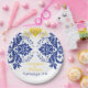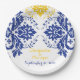 Elegantes Damasmotiv königsblau, gelbe Hochzeit Pappteller