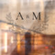 Elegant, leafy, Hochzeit, Fensterheber, Monogramm, Namen, Datum.
