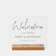 Elegantes Skriptnamen Datum Willkommen zur Hochzeit. Moderner und minimalistischer Stil. Willkommen ist in einem Set Handschrift Stil Skript und leicht personalisieren Sie die Erholung des Textes, wie erforderlich.