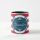 Elegantes Design mit runder Form und individuelle Name-Dekoration auf rot gestreiftem Hintergrund