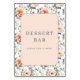 Dieses Bild im floralen Stil zeigt ein elegantes Dessertbar-Schild, umgeben von zarten, blühenden Blumen in sanften Pfirsich- und Cremetönen. Die Komposition strahlt Wärme und Raffinesse aus und lädt Gäste ein, sich mit Grazie an süßen Leckereien zu erfreuen. Perfekt, um jeder Feier oder Zusammenkunft einen Hauch von Charme zu verleihen.