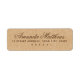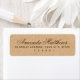 Elegante Rücksendeadressen-Aufkleber mit Ihrem Namen in einem eleganten Kalligraphieskript-Schriftart und die unten stehende Adresse auf einem gedruckten Kraftpapier sehen Hintergrund aus.