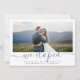 Moderne Schrift "wir haben" in blauer Farbe, mit dem Foto des Paares, einfach und elegant. Große Foto Hochzeitskarten. Wählen Sie "Klicken, um weiter anzupassen" in "Diese Vorlage personalisieren" Abschnitt kann die Schriftfarbe ändern, um Ihr Foto anzupassen, und die Position Ihres Fotos anpassen. Alle passenden Teile in der Sammlung anzeigen
