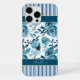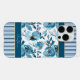 Elegantes Dusty Blue Floral White Stripe Monogramm iPhone Hülle