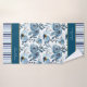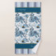 Elegantes Dusty Blue White Floral Stripe Monogramm Badhandtuch Set
