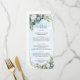 Elegantes Dusty Blue White Gold Floral Wedding Men Menükarte