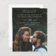 Elegantes einfaches Budget Foto Hochzeit Speichern Sie das Datum Einladung mit minimaler Typografie und Foto auf der Vorderseite. Die Rückseite hat eine Hochzeitswebsite und QR-Code.