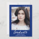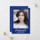 Elegante und einfache Foto-Ankündigung, die mit der modischen, handgeschriebenen Pinselskripttypografie entworfen wurde. Passen Sie die Einzelheiten der Schule oder Uni und das Unterrichtsjahr an. Persönliche Botschaft von stolzen Eltern im Hintergrund. Dieses Design hat blühend Ornamente, die die Botschaft, die ich eliminieren kann, wenn nicht benötigt. Blue Background Herzlichen Glückwunsch Absolvent und Eltern auch! Gut gemacht! Platzhalter Foto Credit: Alexander Zdrobau von Unsplash! Danke