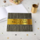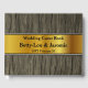Dieses angesehene Gästebuch für Hochzeit/Hochzeit-Party enthält die Meldung "Wedding Guest Book", die personalisierten Namen des verheirateten Ehepaares und das Hochzeitsfestdatum. Es verfügt auch über einen Hintergrund mit einem rustikalen Imitat Holz wie Muster, und ein Imitat gold wie Banner. Es könnte genutzt werden, um fröhliche Wünsche für das frisch verheiratete Paar aufzunehmen.