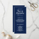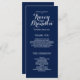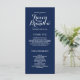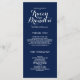 Elegante Hochzeitsprogramme. Weißer Text auf marineblau Hintergrund. Design von Elke Clarke © Verfügbar unter www.zazzle.com/monogramgallery. Passen Sie mit Ihrer Hintergrundfarbe und all Ihren persönlichen Informationen ein einfaches und dennoch anspruchsvolles Programm an, das Ihre Saaldiener ausgeben können, wenn Ihre Gäste in die Kirche eintreten oder sich dort befinden, wo die Zeremonie stattfinden wird. Es hilft den Leuten, während der Zeremonie mitzumachen, aber auch als Pfand für Ihre Gäste. Sie können die Vorlagenfelder verwenden, um die vorgeschlagenen Informationen über Ihre Hochzeitsfeier und die Reihenfolge des Dienstes auszufüllen und Ihnen zu danken, oder wählen Sie "Anpassen" und verwenden Sie das Bearbeitungsmenü, um den Textabstand, die Schriftart, die Farben zu ändern, wie Sie Ihre eigenen Hochzeitsprogramme erstellen möchten.
