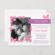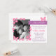 Ein Schmetterling stellt Anmut und Eleganz dar. Diese elegante und noble Schmetterlings-Babypartyeinladung ist perfekt, damit Einladungsgäste die Ankunft des Babys feiern. Die Einladung hat zwei Schmetterlinge, unter den sortierten Blumen zu flattern. Farbeplatette von rosa und von Lila. Personifizieren Sie mit Foto des Babymädchens.