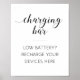 Dieses Ladeschild kann Ihre Hochzeitsgäste darauf aufmerksam machen, dass sie sich keine Sorgen machen müssen, wo sie ihre Bar aufladen können, wenn Sie dafür einen Bereich eingerichtet haben. Teil der Sammlung Alejandra.