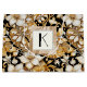 Ein ausgeklügelter Blumendruck aus cremigen Elfenbein-Blume und goldgelben, schwarzen Schriftrollen.