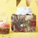 Dieses weihnachtliche Papiermuster hat einen Vintagen Viktorianischen Stil mit einer eleganten Collage klassischer Urlaubselemente. Das Design umfasst reich detaillierte Illustrationen des Weihnachtsmannes, Engel, Frauen aus der Viktorianischen Zeit und festliche Dekorationen wie Poinsettias, Pinecones und Ornamente. Die Farbpalette wird von tiefen Rot-, Elfenbein-, Gold- und Braun dominiert und schafft ein luxuriöses und nostalgisches Ambiente. Jedes Element ist in verzierten, vergoldeten Rändern mit einer Touch von Funkeln gerahmt, die das antike und opulente Aussehen verstärken. Dieses Verpackungspapier erinnert an einen warmen, traditionellen Weihnachtszauber, der sich perfekt für einen klassischen Urlaub eignet.