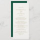 Elegantes Emerald Green Cream Gold Wedding Menü Menükarte