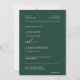 Diese elegante, moderne, minimalistische Hochzeitseinladung verbindet einen serifenlosen Schriftart mit wunderschöner Schriftzeichen-Kalligraphie für die Worte "und" und "Antwort" und gibt ihm einen zeitlosen und raffinierten Look auf einem smaragdgrünen Hintergrund. Das Design zeichnet sich durch ein personalisiertes Foto des Ehepaares und einen QR-Code aus, der die Gäste zu UAWG- und Veranstaltungsdetails führt, wodurch es zu einer perfekten Kombination aus Stil und Komfort wird. Mit dieser All-in-One-Einladung grün gehen, indem Sie den Bedarf an zusätzlichen UAWG- und Detailkarten reduzieren. Fügen Sie einfach Ihren QR-Code zur Rückseite der Einladung hinzu und teilen Sie essenzielle Hochzeitsinformationen digital mit. Personalisieren Sie die Namen und Formulierungen in wenigen Schritten und personalisieren Sie die Einladung mit Ihrem eigenen Foto für eine einzigartige und sinnvolle Touch. Bitte beachten Sie: Das schöne Schreiben der Wörter "und" und "Antwort" zusammen mit den Zeilen auf der Vorder- und Rückseite und andere grafische Kunstwerkelemente können nicht bearbeitet, verschoben oder gelöscht werden. Sie sind behoben. Das Skript für die Wörter "und" und "Antwort" kann zusammen mit den Zeilen und anderen grafischen Werken nicht bearbeitet, verschoben oder gelöscht werden. Diese Elemente sind behoben. Wenn Sie die Farbe ändern möchten, können Sie die Einladung einfach an Ihr Hochzeitstil anpassen, indem Sie auf "Einladung anpassen" klicken. Sie können diese Einladung mit Ihrem Text personalisieren und digital über Text, E-Mail oder soziale Medien teilen. Bevorzugen Sie eine traditionelle Touch? Sie haben auch die Möglichkeit, eine gedruckte Version an Ihre Gäste zu schicken - oder beides für zusätzlichen Komfort!