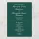 Begleiten Sie Ihre Gäste durch Ihren besonderen Tag mit diesen markanten smaragdgrünen Hochzeitsprogrammen. Mit einem reichen grünen Hintergrund mit knalligem weißen Text bieten diese Programme einen schönen und organisierten Überblick über Ihre Zeremonie. Personalisieren Sie die Namen des Paares, das Hochzeitstermin und die Zeremonie Details, um eine einzigartige Touch hinzuzufügen. Die traditionelle Schriftzeichen verleihen dem Gast eine zeitlose Eleganz und sorgen dafür, dass er sich während der Feier gut informiert und geschätzt fühlt.